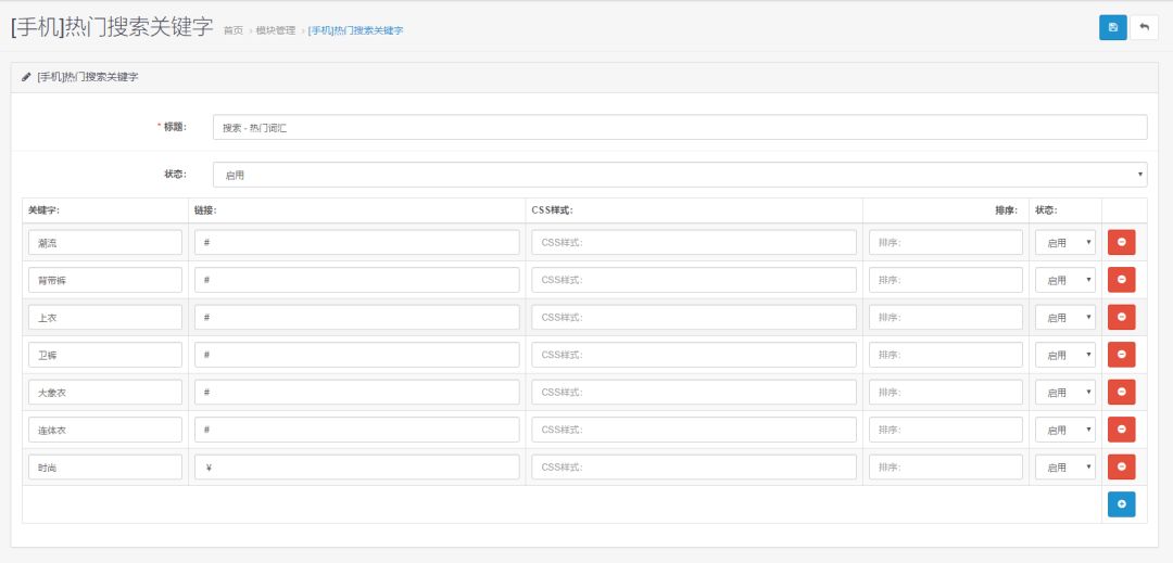 现支持手机端搜索商品的热门关键词,快速引导客户找寻想要的商品。