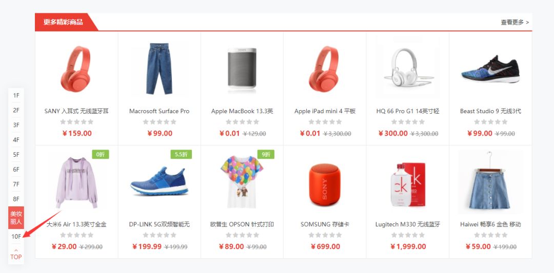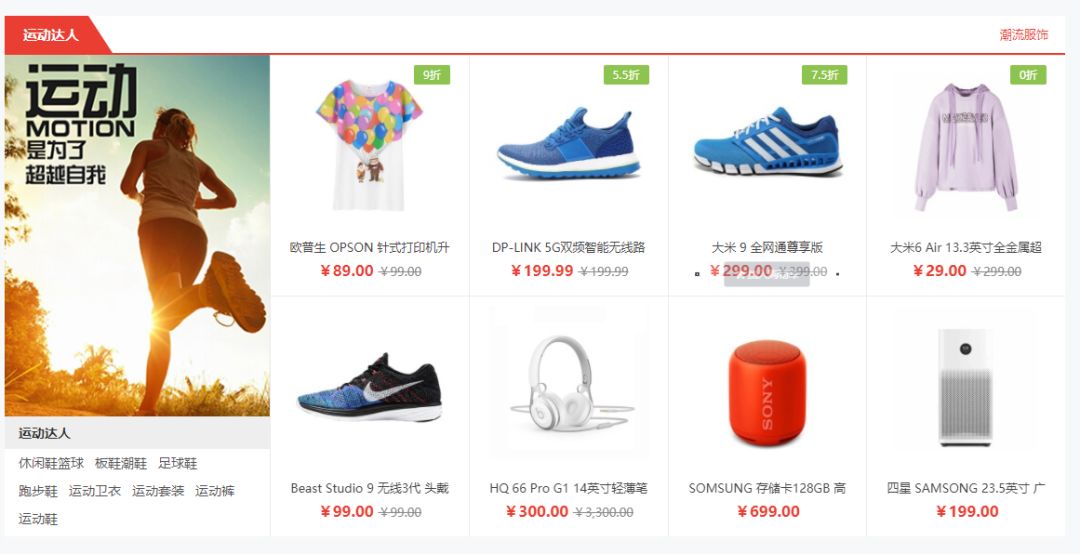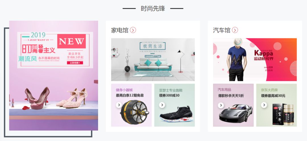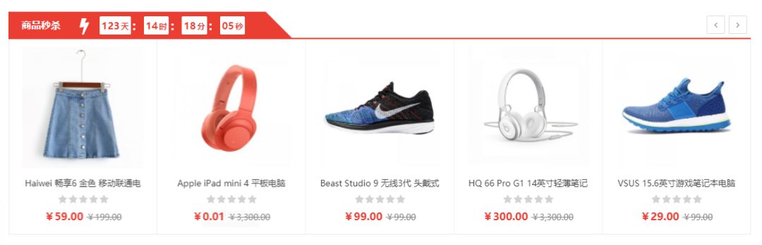 每个小模块布局也不同,比如商品秒杀,会有显眼的图片引导用户点击。
