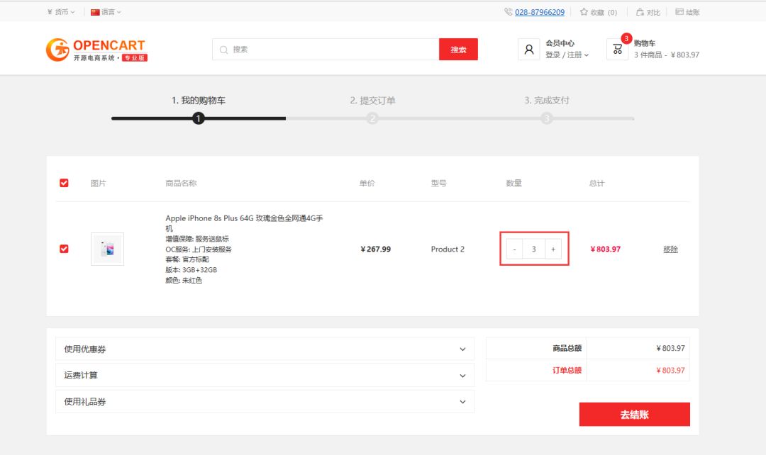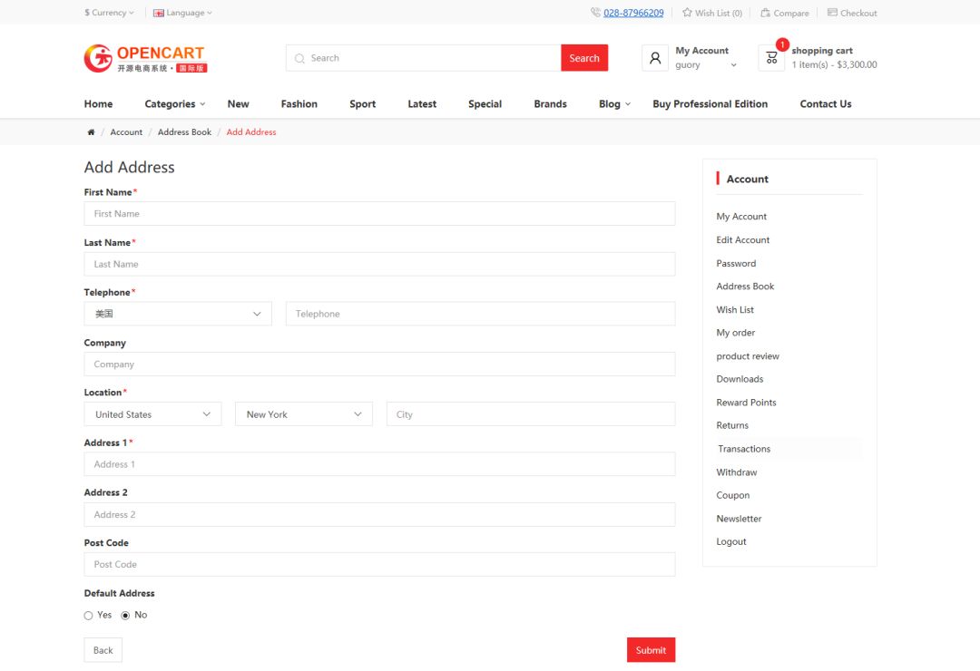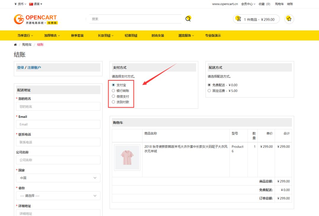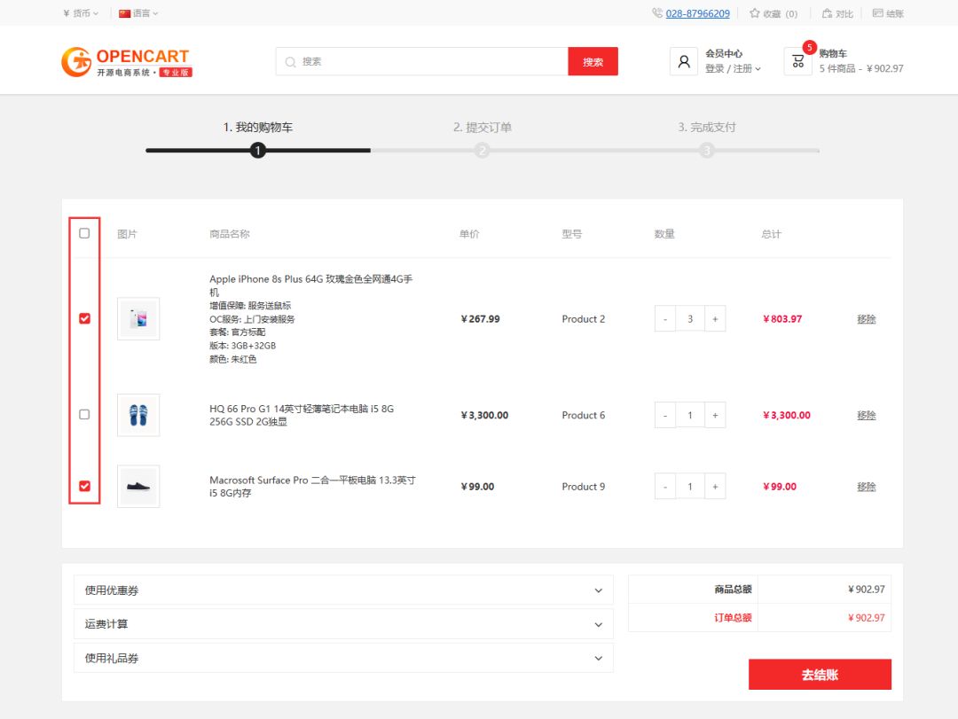 专业版和免费版所有功能对比: https://www.opencart.cn/comparison 专业版更多精彩功能欢迎进入OpenCart中文官方网站进行体验 也可点击以下方链接: 前台体验请访问:https://mall.opencart.cn 后台体验请访问:https://mall.opencart.cn/admin 后台用户名密码:demo/demo