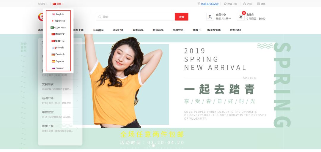 ✦ 支持秒杀功能、博客分类和文章管理,支持多语言 ✦ 可设置多个客服 QQ 或有JS接口的聊天软件,也可以设置店铺二 维码 ✦ 集成美洽在线聊天系统 ✦ 优惠券直接送到客户账户上,在购物时可直接显示并使用 ✦ 优惠券领取功能,客户可以点击领取进行消费抵扣